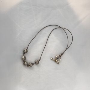 Leather and silver choker. Antique chocolate brown leather holds silver roses. Silver clasp. 19 ". Lightly worn.