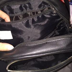 Black leather backpack, with 3 zip pockets. Great conditions smoke & pet free home!