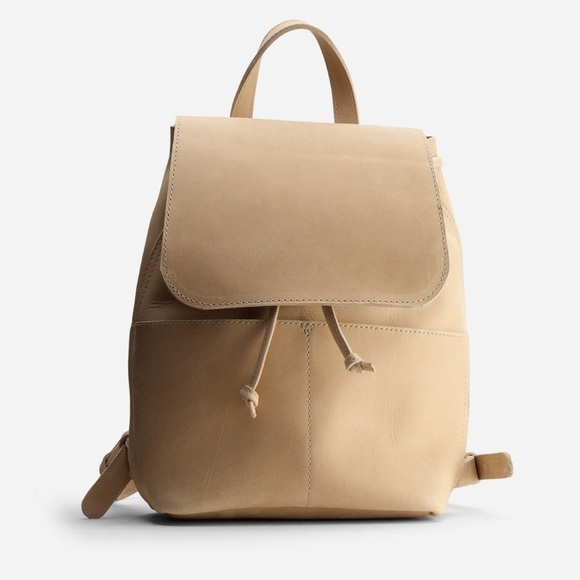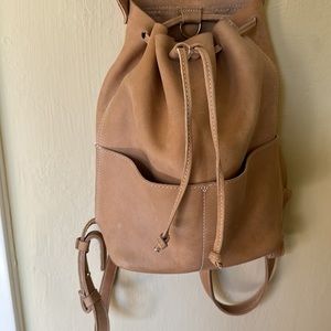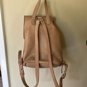 Parker Clay Natural Leather Backpack with internal zip pocket, drawstring and flap. Like new condition