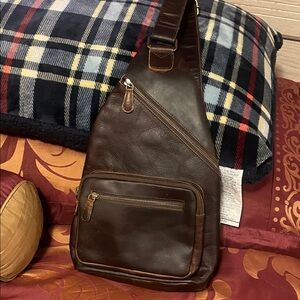 Stylish and versatile brown leather sling bag for men. Perfect for daily use and travel.