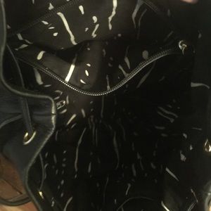 Real leather bag in perfect condition. Only carried a couple of times. Has stripes of gold on front and back.