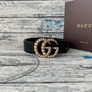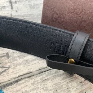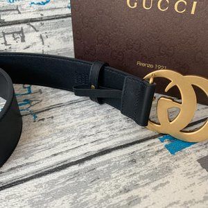Classic Gucci women's black belt, logo brass double G and jewelry, not my favorite style, 90% new, serial number: 409417480199