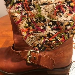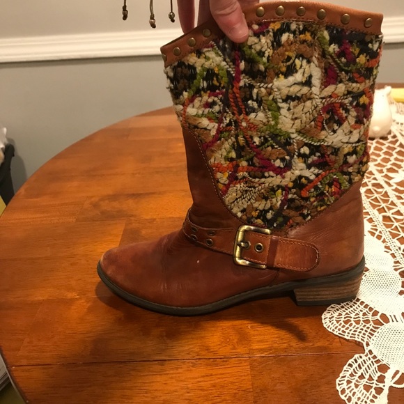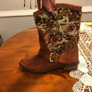 Cute vintage leather boots! Lightly worn in leather size 6. Cute yarn detail around the boot! Slightly longer than ankle boots. Perfect for denim shorts, cropped pants, or for those thinking about fall looks already!