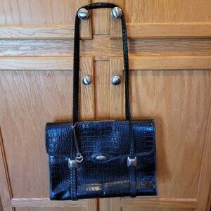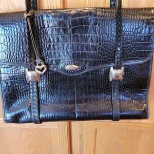 Leather briefcase Brighton black handbag career work shoulder bag multi pockets