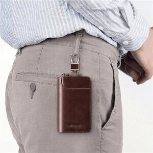 🧿Easy Access Key Holder Pouch: Upgrade your keychain with this rugged leather key organizer pouch, Independent-layer design separates home keys from delicate car fobs in a scratch-free zone. 1 outside quick-access and 2 inside card slots store daily-use card or emergency cash. Water-resistant zipper ensures contents stay dry during rainy commutes. Hang it to gym shorts or pants - perfect for joggers needing hands-free key management, liminate pocket bulge instantly!