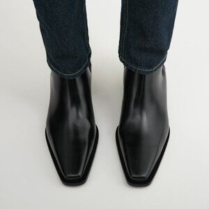 Condition: These Toteme Leather City Boots are in fair shape with scrunching on the toes. Crafted in Italy from polished leather, they feature a modern silhouette that combines elements from The Western Boot and The Mid Heel Boot, making them suitable for everyday wear and stylish outings.
