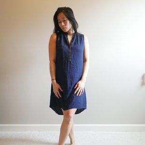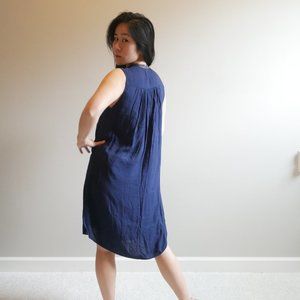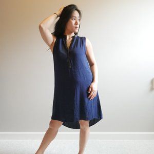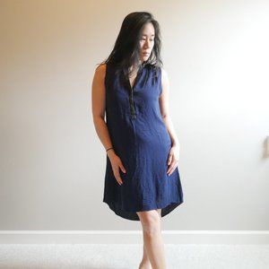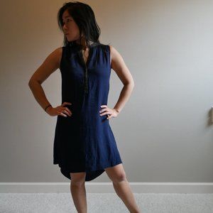 Casual and comfortable dress from Alice & Olivia with leather detailing around the collar with snap buttons to increase opening.