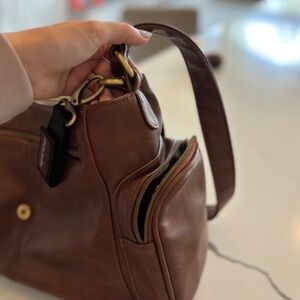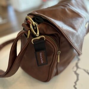 Leather crossbody diaper bag in great condition. Comes with straps to hook on to cart/stroller