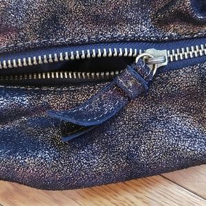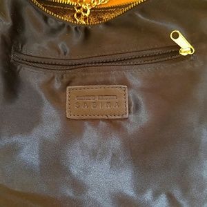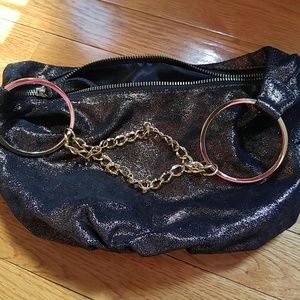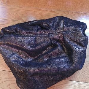 Black leather with pebbled gold. Hardware is gold finish and pristine. Inside perfect condition. 12"x 7.5". Chain handle is 6.5 inch drop.