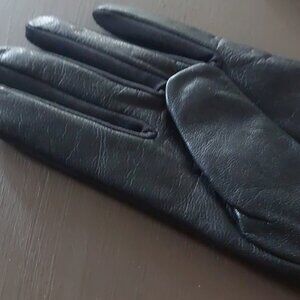 Chocolate brown Lily Morgan leather gloves with bow detail at wrist