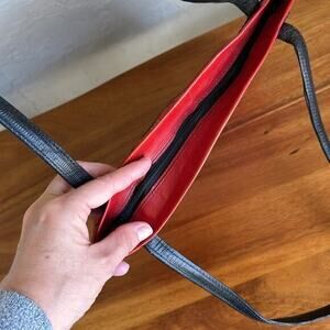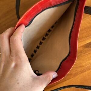 Leather hand made embossed red and black shoulder bag ant made in Peru