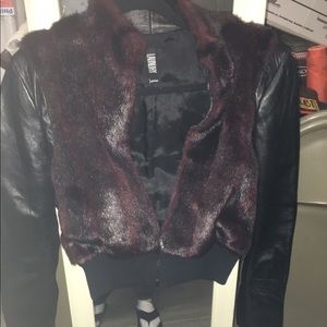 1995 in style jacket black with burgundy fur never worn it's been sitting in my closet