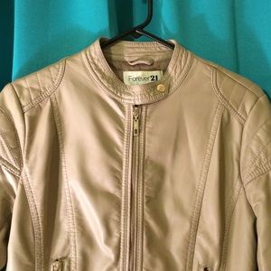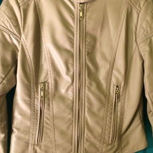 Fun tan leather jacket with gold zippers