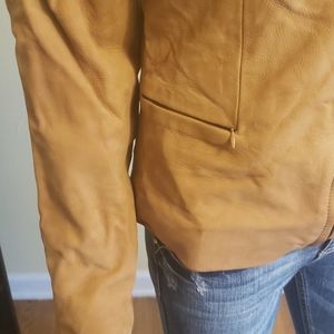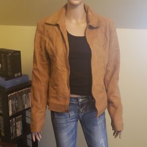 Tan leather jacket. It needs professional cleaning.100%genuine leather.
