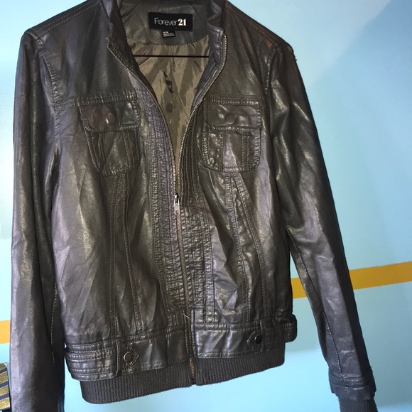 Grey leather Forever 21 jacket. All zippers and pockets are in perfect condition. A little worn out but still in good condition and fashionable!