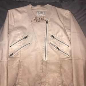 BKE outwear, light pink with a darker tan zippers, no true pockets, is a little shorter mid length, only worn a handful of times