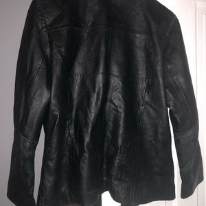 Stylish black women’s leather jacket. Size small and good used condition.. too small for me and not enough room in my closet to save.. pic 4 shows 2 small tears on the inner lining only, no damage on the leather Itself