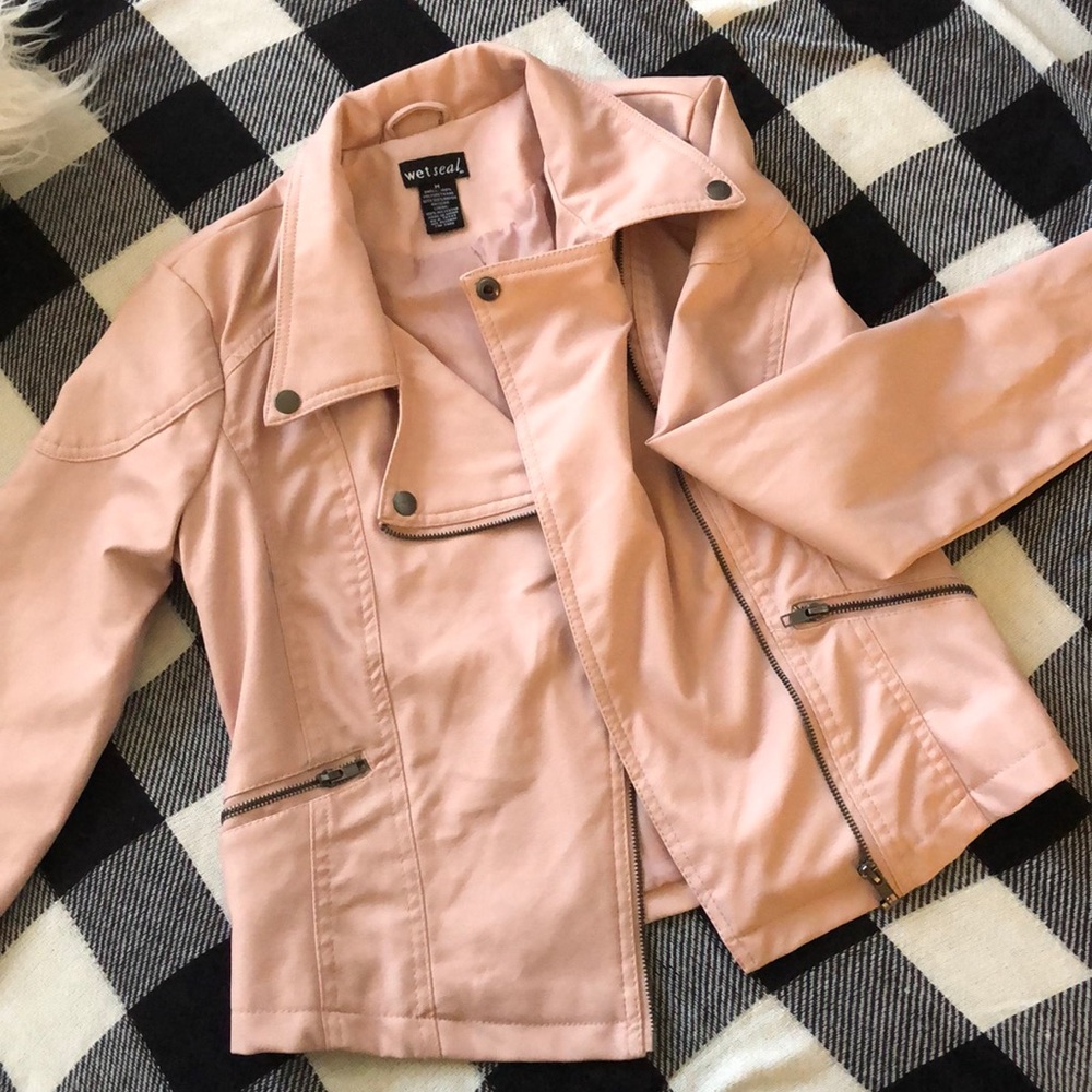 Blush pink leather jacket