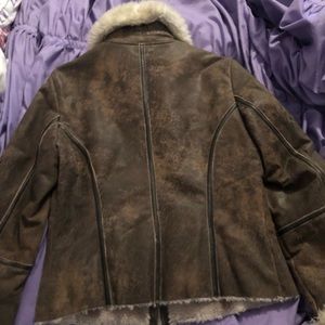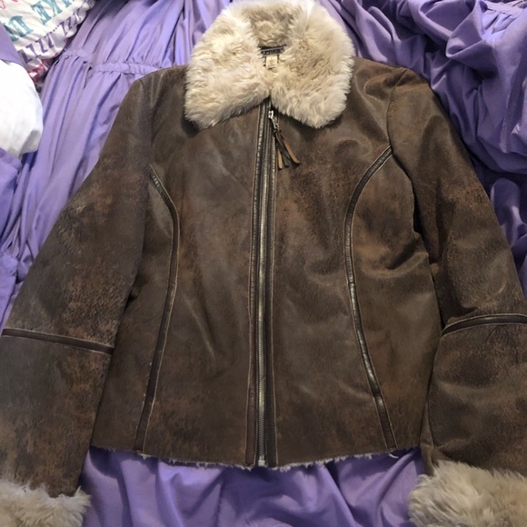 Woman’s Express 100% leather jacket. Size 8. Great condition. Fur around the outside collar and wrists. Fur throughout the jacket as well