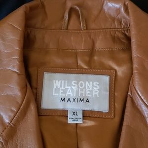 Caramel colored leather jacket. Great condition, only thing missing is the buttons.
