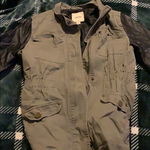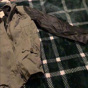 Black and dark green jacket it’s between a medium and small fit