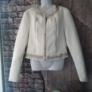 White leather jacket with studs and zippers