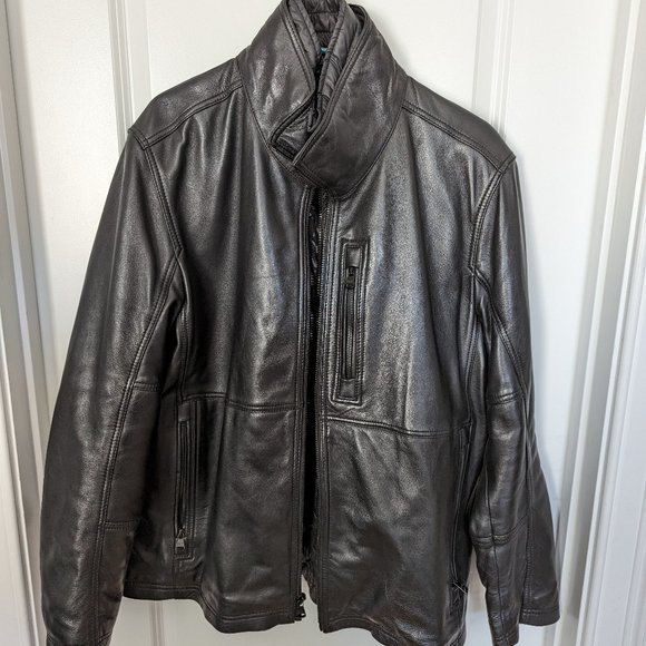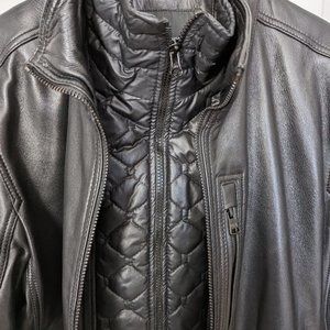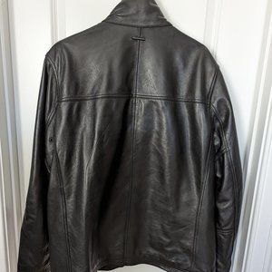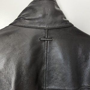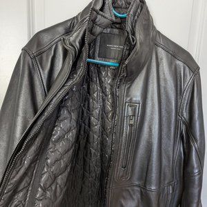 Genuine soft leather, black. Hardly worn. Has black quilted lining.