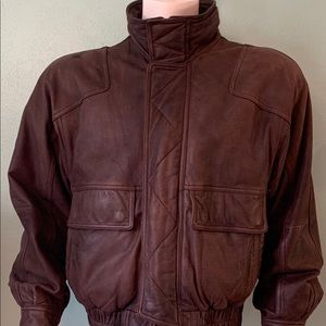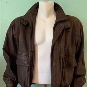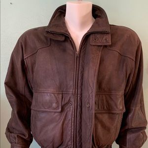 Men’s medium brown leather flight jacket very cool jacket