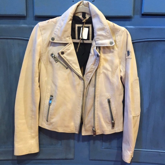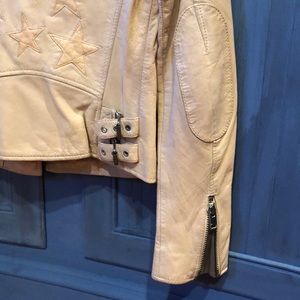 Leather Garment, special washing treatments increases this uniqueness.Asymmetrical zip front lined jacket . Back star patch details. Pale pink . A must have. Last one ☝️❤️🛍