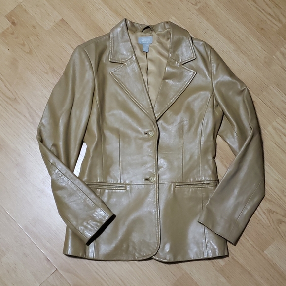 Old Navy brand leather jacket. Tan in color. Womens size Medium.