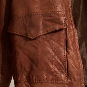 Gorgeous leather, vintage style, fur lined. You can take fur on or off. Brown leather. Made in Italy