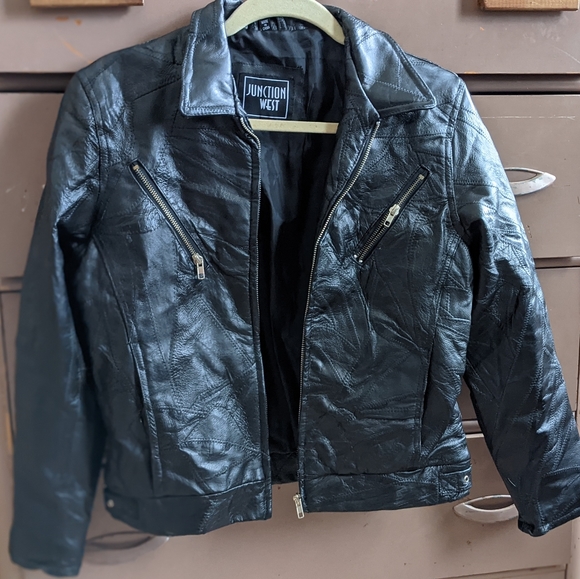 Brand New with tags! Leather jacket with pockets and collar. Zips up.