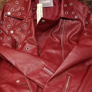 Maroon leather jacket like new. Worn one time. Size small. Comes from a smoke free home and no wear n tear. Great for a night on the town.