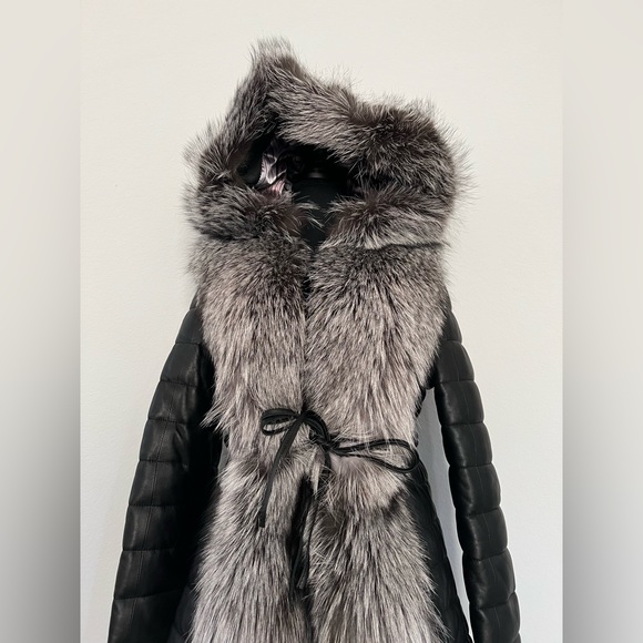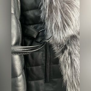 Lambskin New Leather zip up Coat with Fur Trim and Detachable sleeves.