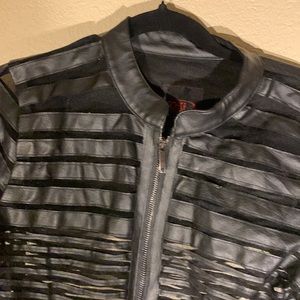 Striped leather jacket with see though accents