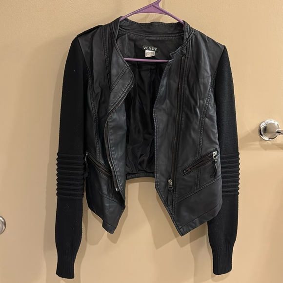 Mixed media faux leather jacket