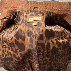 New, never worn, closet deco! Size XL, camel in color, wrinkle look.