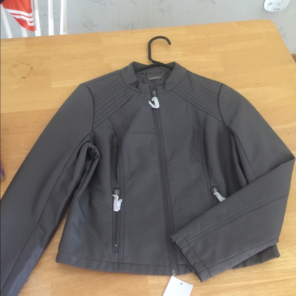 Gray faux leather jacket NWT