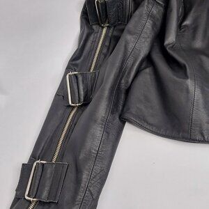 Leather jacket with silver buckles/zippers down sleeves Harley Davidson patch