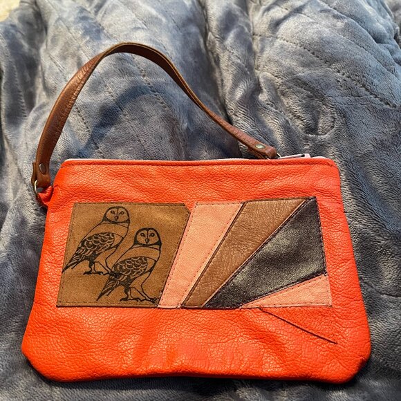 Leather multicolor clutch purse never used in great condition. Approximate dimensions 7.25"X5.5". Really cute please see pictures for further description. Next day shipping!