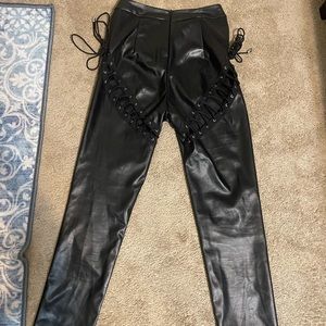 High waisted Pretty Little Thing Leather Pants with cut outs