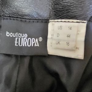 Preowned black Europa leather pants. Measurements: Waist 17", Inseam 31", Outter seam 41.5". Thanks for viewing. Happy Poshing.