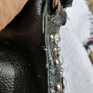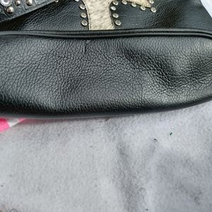 Leather purse with hide hair cross and lots of bling. A little wear ( pictured) but still plenty of life!