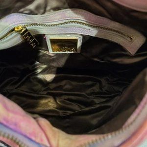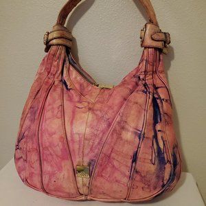 Leather shoulder bag hobo Purse Handbag boho dyed blue pink purple barbie tiedye