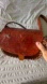 Leather tooled Hummingbird two-tone purse, hand made. Brown/red/brown suede sewn