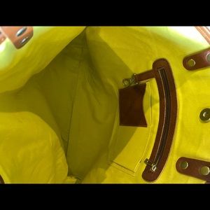 Slightly used super cute leather tote with bright yellow cloth interior and silver hardware!