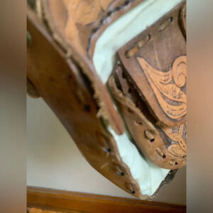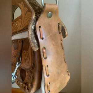 Leather vintage 70’s purse handtooled bag crossbody canvas hippie boho western