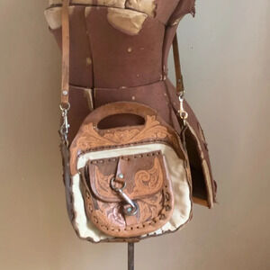 Leather vintage 70’s purse handtooled bag crossbody canvas hippie boho western