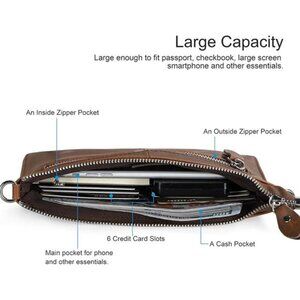 Leather wristlet clutch wallet small crossbody bag with rfid blocking card slots