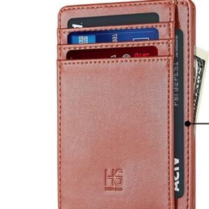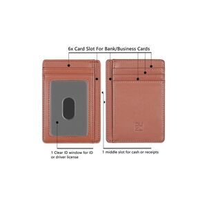 Slim credit card holder made with genuine leather. This measures 4.4" X 3" X 0.1" inches with 4 card slots,3 larger cash slot, and 1 ID window.